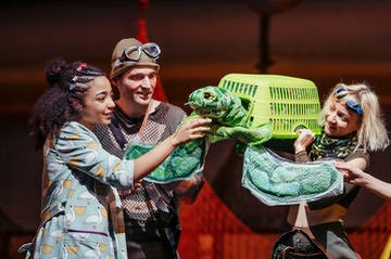 ZOES SONDERBARE REISE DURCH DIE ZEIT Jimmy Osborne und Sue Buckmaster Uraufführung am 13. November im Akademietheater Familienstück ab 6 Jahren Eine Koproduktion mit Theatre-Rites Zoe Safira Robens Tupperware Dorothee Hartinger Oilman Wolfram Rupperti Puppenspieler*innen : Teele Uustani, Stellan Torrn, Maximilian Tröbinger (Cover) Regie: Sue Buckmaster Bühne und Kostüme: Joanna Parker Musik: Frank Moon Mitarbeit Regie: Charlotte Dubery Dramaturgie: Götz Leineweber ( Photos © Susanne Hassler-Smith)